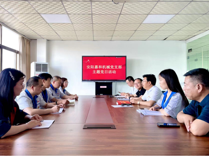 為慶祝中國共產(chǎn)黨成立102周年,深刻領(lǐng)會二十大新修訂黨章的理論內(nèi)涵和精神實質(zhì),加強全體黨員的黨性意識,提高理論素養(yǎng),2023年6月30日下午,安陽嘉和機械有限公司黨支部組織開展“迎七一、強黨性、以黨建引領(lǐng)企業(yè)高質(zhì)量發(fā)展”主題黨日活動。該活動由嘉和機械黨支部書記、炬石玄纖科技總經(jīng)理張道林主持,嘉和機械、炬石玄纖科技董事長蘇林及嘉和全體黨員參與。